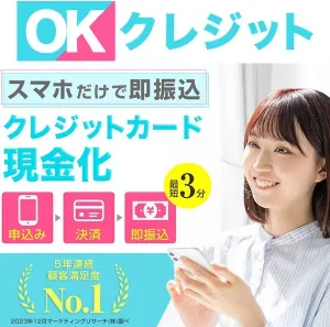 - 【5位】OKクレジット|最短3分・スマホだけで完結・換金率93〜98%