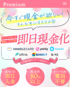 | かんたんキャッシュ | 91〜99.8% | 最短3分 | 過去0件 | 無料 | あり | 取引可 |